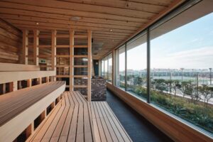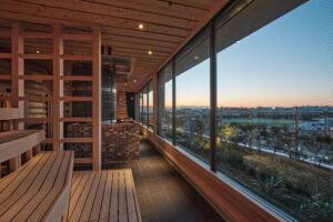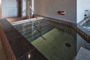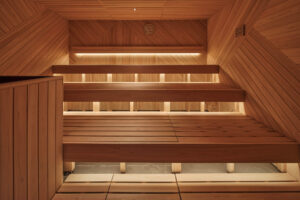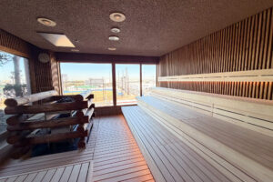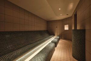 さらにラウンジエリアに、約90℃と高温のフィンランドサウナ。水風呂が苦手な方に人気の約10℃のクールルームが並んでいます。