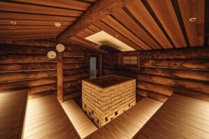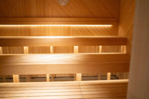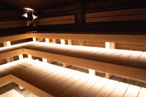 本場フィンランドのケロサウナは、ケロの木材を入れ替え、リニューアル直後らしい木の香り漂うサウナに。壁にはアンティークのケロを使用しています。