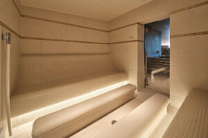 約45℃のアロマスチームサウナ、カルダリウムも並んでいます。