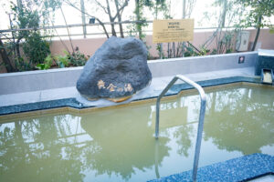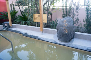 隣には、新たに「不感の炭酸泉」が登場しました。炭酸ガスの約34〜37℃のお湯で、リニューアルに際したアンケートで非常に要望の多い風呂だったということで、導入されたそうです。