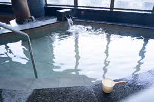 定番の内風呂は、地下1,700mから湧き出る温泉濃度50%の約41℃の風呂。