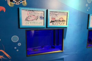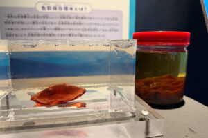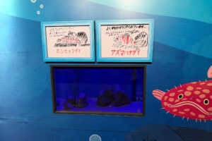 特設水槽には、イベント期間中に採集した深海生物を展示予定。解説パネルも手描きで、その時に展示できる深海生物との偶然の出会いが楽しめます。