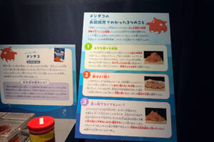 ここでは、飼育スタッフが実際に未利用魚を調理して、味を評価した様子をパネルで紹介。