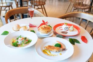 ムーミン谷の仲間たちによるミニショーを楽しみながら、特別なコース料理を楽しめます。