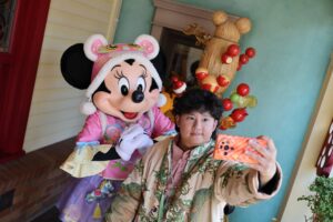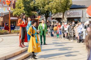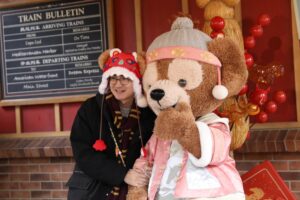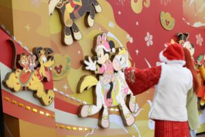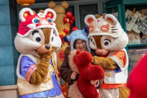 ミッキーやダッフィーたちも春節のコスチュームを着てグリーティングやショーに参加。