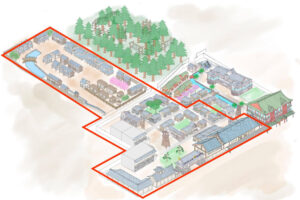 3月28日(土)に第1期リニューアルオープンした後、2027年春には第2期として5つの飲食・物販店舗や遊郭ゾーンがオープン。2028年春に第3期として芝居小屋・中村座(仮称)がオープン。その後、温浴施設を計画中です。