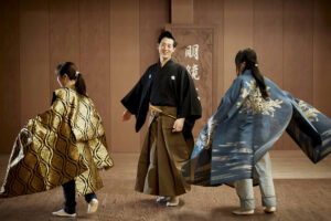 浮世絵で空間演出された町家を舞台に、浮世絵の中へ入り込む没入体験「浮世絵世界」と、役者と遊びながら京や時代劇の所作・言葉遣いが身につく「京あそび」の2つの体験ができます。