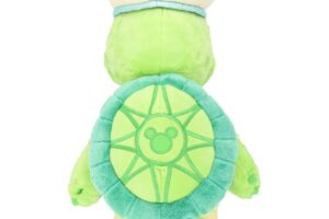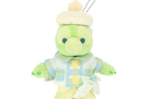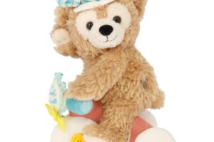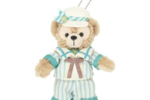 ストーリーに登場する “ファインド・ブルー号”に乗って今から出発するかのようなダッフィーのぬいぐるみも販売します。