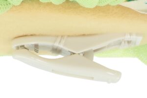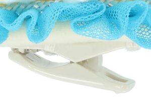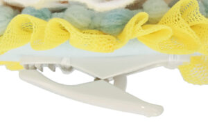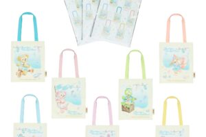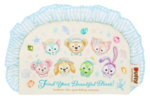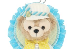 ダッフィーたちのクリップはぬいぐるみ素材で、それぞれカラフルなリボンが胸に付いています。クリップは、青色さがしに出発するダッフィーたちがそれぞれ描かれたトートバッグやキャップに付けられる仕様になっています。
