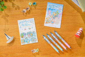 また、グミキャンディー、ミニスナックケース付きも登場します。砂浜で見つけたきらきら光る石たちを、ダッフィーがビンに集めている様子を表現したデザインで、グミキャンディーは、ダッフィーが持つビンの中から取り出すことができます。