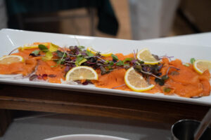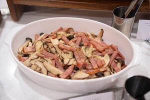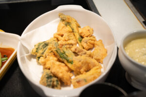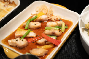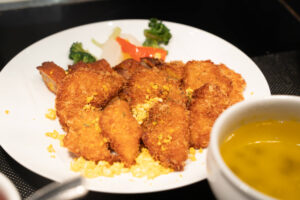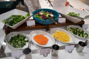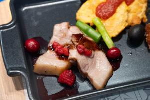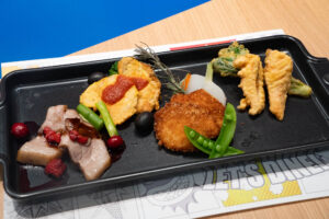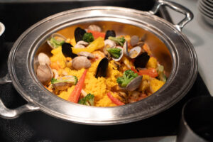 ローストポークベリー入りヴァンルージュソース、サーモンと菜の花のフリットアイオリソース、ひとくちチキンカツ ノワゼットバターソース、白身魚のソテー実山椒ソース、ミックスパエリアといった、見た目も春らしい食材や春ならではのソースを合わせた料理が食べ放題です。