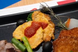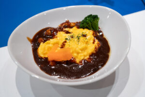 さらに、オムライスもライブキッチンに登場。デミグラスソースをかけていただきます。