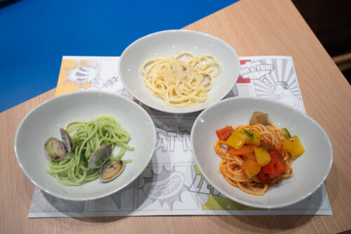 パスタは3種類を用意。好きなパスタを注文すると、出来立てをテーブルまで運んでもらえます。