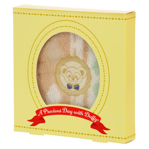 ダッフィーが刺繍されたミニタオル。専用ボックス入りです。