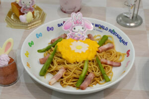 春をテーマに、キャラクターたちが彩るカラフルなプレートメニューやスイーツ、ドリンクが多数登場します。