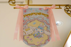 エスターバニーは、PUROSPRINGPARTYのコスチュームを着たサンリオキャラクターたちのオリジナルグッズや、コラボレーションフードも登場します。