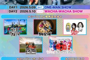 DAY2のフェスでは、シベレス広場でヤバイTシャツ屋さんをはじめ、打首獄門同好会、ORANGE RANGE、四星球、HEY-SMITHのライブパフォーマンスを実施。新たににエンバシーホールにステージを設け、Wienners、サバシスター、シンガーズハイ、超能力戦士ドリアンが出演します。コロシアムでは滝音、令和ロマンによるお笑いステージを行います。
