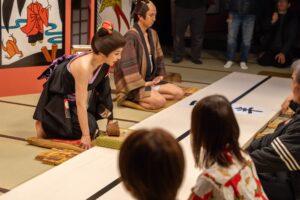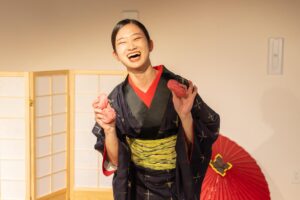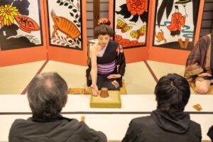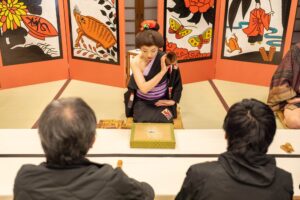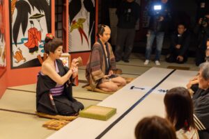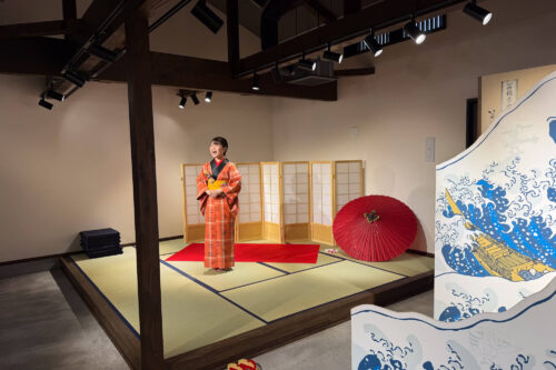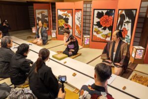 浮世絵の世界に入る「浮世絵世界」と、役者と遊びながら京や時代劇の所作・言葉遣いが身につく「京あそび」を行います。