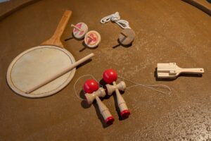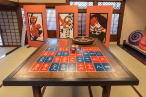 配られた木札を使い、丁か半かを張っていく、江戸の博打。実際に何かを賭けるわけではなく、2つの賽の合計が偶数か奇数かに張っていきます。
