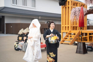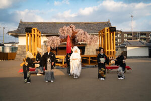 演目は切り替わり、リニューアル後を飾る春の演⽬は「花嫁道中桜の宴」。