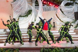 ダンサーもジュビリーブルーのリボンフラッグを振りながら登場。