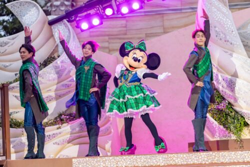 ミニーはアイリッシュなスタイルで登場。