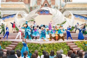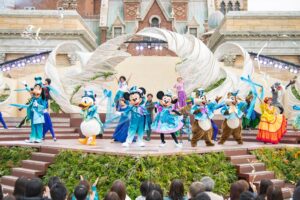 東京ディズニーシー25周年テーマソング「Come Join the Jubilee」のショーアレンジバージョンが流れ、全員で歌い踊ります。