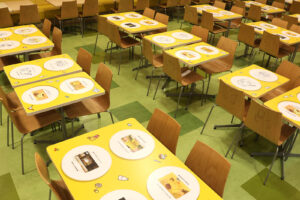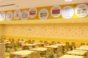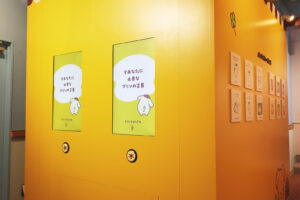 館のレストラン利用者だけが見られる展示や、キャラクターフードコートのテーブル、ロッカーでの展示など、意外な場所にも展開。約200点が登場しています。