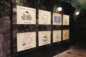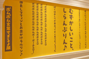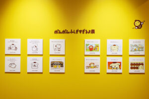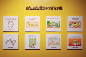 クリエイティブチームentaku “おてつだい”のもと、チームプリンが心を込めて準備した展示。「ポムポムやさしすぎるよ展」や「ポムポム犬すぎるよ展」といった、懐かしい一面からあまり知られていない意外な一面まで、ポムポムプリンの魅力がいっぱいの展示です。