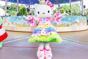 35周年コスチュームを着たキティをはじめ、全22キャラクターが登場。アニバーサリーソング「スマイリンク」をゲストと一緒に踊りました。