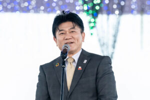 小巻社長、来賓の佐藤大分県知事、安部日出町長が挨拶。それぞれ、地域協定やエンタメリゾート化「天空のパーク」構想についても語りました。