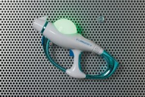 アトラクションのブラスターをイメージした「ブラスターガン」は、光とサウンドに加え、暗いところでは狙った先にアートも投影されます。