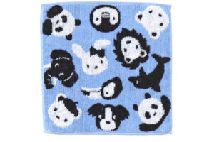 クマちゃんとアドベンチャーワールドの動物たちが総柄になったタオルハンカチです。