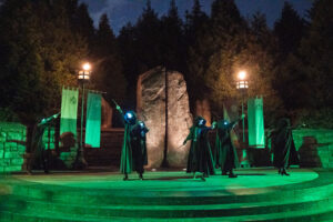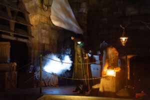 目の前でデス・イーターと村人たちの戦いが行われ、ホグズミード村の各地でショーが行われ、エリア全体で演出。