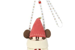 ミッキーとミニーのぬいぐるみ(5,500円)ぬいぐるみバッジ(2,800円)は、サンタの帽子をイメージしたキャップやあたたかそうなマフラーなど、クリスマスにぴったりな衣装で身を包んでいます。