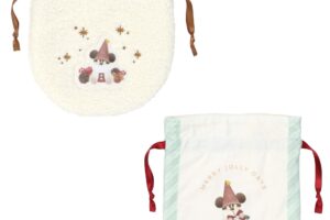 ミッキーたちがパークをクリスマスらしく彩るお手伝いをしている様子が描かれたきんちゃく(900円)ワッペンアクセサリー(1,000円)ポストカードセット(600円)が登場します。
