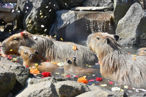 冬の恒例イベント「元祖カピバラの露天風呂」が今年も開催。