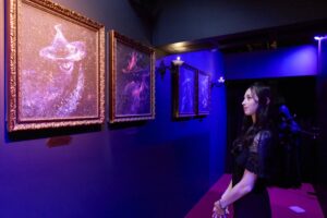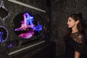 “鏡だらけの館”に入り、暗い廊下を進むと魔女たちの肖像画が飾られています。魔女の使いが現れ、喜怒哀楽4つの感情を司る4人の魔女を紹介。
