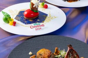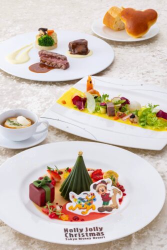 エンパイア・グリルでは、“ディズニー・クリスマス”スペシャルディナー(13,800円)を提供。低温で火入れしたサーモンや、スパイスを効かせたソースが印象的な国産牛サーロインのグリルなど、クリスマスの夜に華を添えるようなディナーコースです。