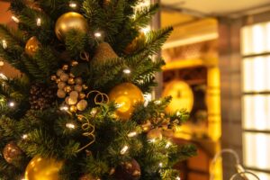 館内にはクリスマスツリーが飾られ、各々のホテルの世界観を象徴。各レストランでもツリーを楽しめます。