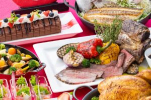 肉の旨みを閉じ込めながら低温で丁寧に焼き上げたローストビーフや鯛を贅沢に混ぜ込んだ鯛めしなど、華やかなメニューがブッフェ台を彩ります。