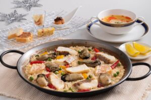 伊勢まだいと的矢かきを炊き込み白醤油の風味をきかせた和風の白いパエリャと、バスクチーズケーキやチュロスを楽しめるデザートプレートが登場。