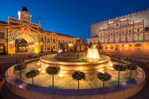 夕暮れ時からは、イルミネーションやライトアップでスペインの街並みやアトラクションがロマンチックな雰囲気に。