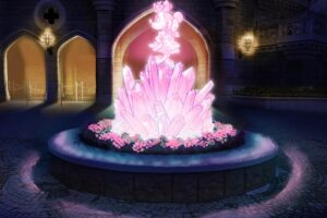 シンデレラ城前のプラザにあるランプポストの上部がハート型のステンドグラス仕様になるなど、辺りをピンク色に照らすデコレーションで夜もミニーの世界に染まります。