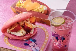 キュートな見た目もポイントな「リフレッシュメントコーナー」のスペシャルホットドッグ(チーズ&エッグ)など、ミニーの世界に染まったさまざまな場所で写真撮影をしたくなる、持ち歩きにもおすすめなメニューが登場します。
