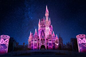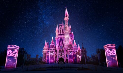 新たに実施する「ファンダーナイト」では、ポップな音楽にのせてシンデレラ城にプロジェクションマッピングでリボンやハートなどミニーらしいモチーフが映し出されます。