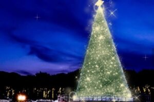 中四国最大級23mのクリスマスツリー「ゴールドツリー」は、マツケンサンバの曲とともに点灯。パーク内のイルミネーションも輝きます。