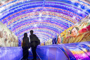 日本一長いエスカレーター「マジックストロー」は、光と音、空間がマツケン一色に。