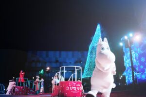 ムーミン屋敷の前では新たなショー「ムーミン谷のルミナスナイトショー~クリスマスって なんだろう?~」を公演します。