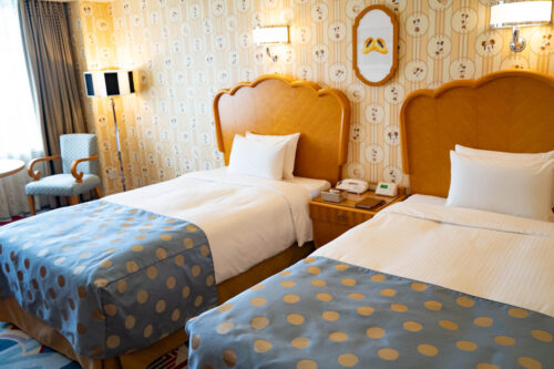 ミニーマウスルームは、ミニーの世界観いっぱいの客室です。ディズニーアンバサダーホテルらしい、短編時代を思わせるクラシカルなスタイルのミニーのモチーフがあちこちに施されています。